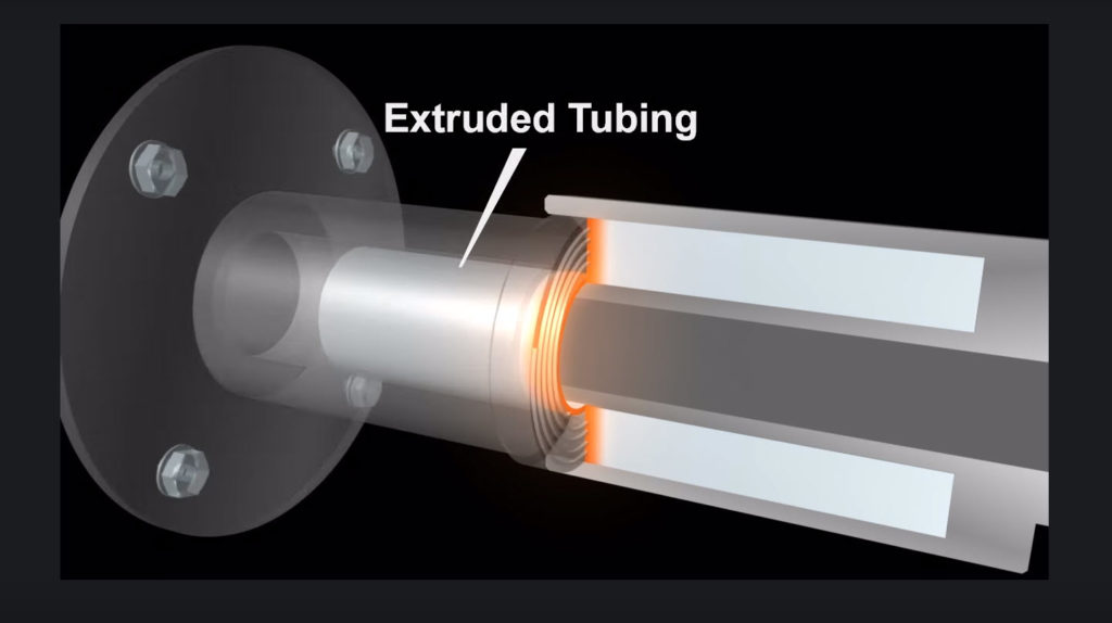 This significant reduction in force would enable substantially smaller production machinery, thus lowering capital expenditures and operations costs for an industry adopting this patent-pending process. The force is so low that the amount of electricity used to make a 1-foot length of 2-inch diameter tubing is about the same as it takes to run a residential kitchen oven for just 60 seconds.